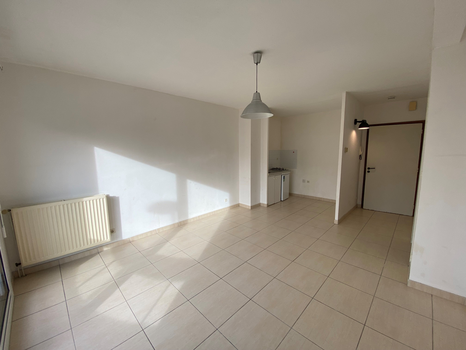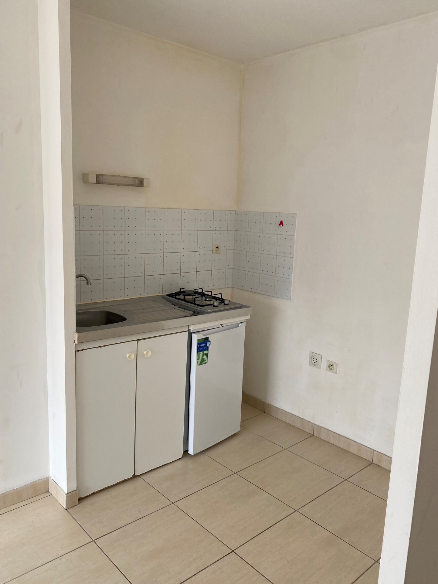 Il comprend une entrée avec placards de rangement, une pièce de vie et une cuisine équipée avec plaque gaz et frigo top, un balconnet donnant sur le séjour, une chambre, une salle d'eau et un WC.